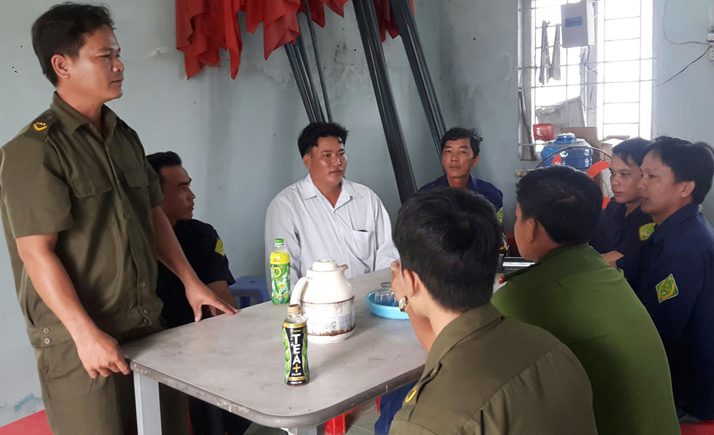 Anh Huỳnh Ngọc Vũ (đứng) - điển hình trong phong trào Toàn dân bảo vệ an ninh Tổ quốc