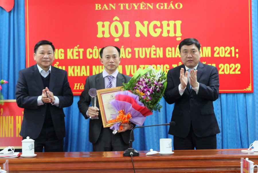 Nhân dịp này, Ban Tuyên giáo Tỉnh ủy Hà Giang đã công bố trao giải cho tác giả Lương Hoàng Nghĩa, cán bộ Ban Tuyên giáo Tỉnh ủy đạt giải A Cuộc thi viết Chính luận khoa học Bảo vệ nền tảng tư tưởng của Đảng, đấu tranh phản bác các quan điểm sai trái, thù địch trong tình hình mới do Học viện Chính trị quốc gia Hồ Chí Minh tổ chức. Đồng thời, khen thưởng cho 6 tập thể có thành tích xuất sắc trong thực hiện công tác tuyên giáo năm 2021./.