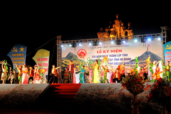 Tiếp đó là chương trình nghệ thuật với chủ đề “Hà Giang – Khúc tráng ca nơi cực Bắc” gồm 4 Chương. Chương 1: Bản tình ca từ đá núi; Chương 2: Sắc hoa văn Hà Giang; Chương 3: Hà Giang trên đường hội nhập và phát triển; Chương 4: Hà Giang - điểm hẹn nơi cực Bắc; do các diễn viên của Đoàn Nghệ thuật tỉnh Hà Giang, Tuyên Quang và 11 huyện, thành phố của tỉnh Hà Giang biểu diễn, tái hiện lịch sử phát triển của Hà Giang trong thời kỳ khó khăn, gian khổ, nhân dân còn trong cảnh lầm than, đói rét... nhờ có Đảng soi đường, chỉ lối đã vươn lên thoát nghèo, xây dựng quê hương ấm no, hạnh phúc..../.