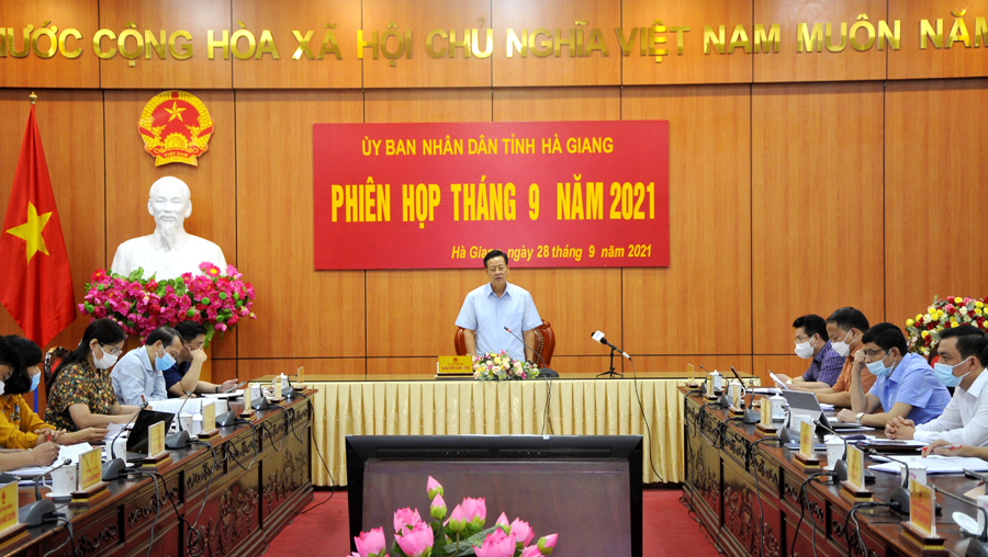 Báo cáo tại phiên họp, 9 tháng đầu năm, tình hình phát triển kinh tế - xã hội trên địa bàn tỉnh Hà Giang cơ bản ổn định và đạt một số kết quả tích cực, dịch bệnh kiểm soát tốt. Để hoàn thành các mục tiêu, nhiệm vụ phát triển kinh tế, xã hội, tỉnh đã chủ động nắm bắt, đánh giá tình hình, sâu sát cơ sở, linh hoạt trong chỉ đạo, điều hành, với quyết tâm thực hiện mục tiêu kép. Đến nay, Hà Giang là một trong số ít các tỉnh, thành phố không có ca lây nhiễm COVID-19 trong cộng đồng; tỉnh bố trí trên 82 tỷ đồng phục vụ phòng, chống dịch; cử 3 đoàn cán bộ y tế với 112 cán bộ hỗ trợ miền Nam chống dịch; hỗ trợ thực phẩm cho đồng bào miền Nam và thủ đô Hà Nội; thực hiện các chính sách hỗ trợ cho đối tượng bị ảnh hưởng dịch COVID-19.