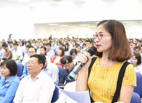 Người lao động nêu ý kiến tại Hội nghị - Ảnh: Minh Châu