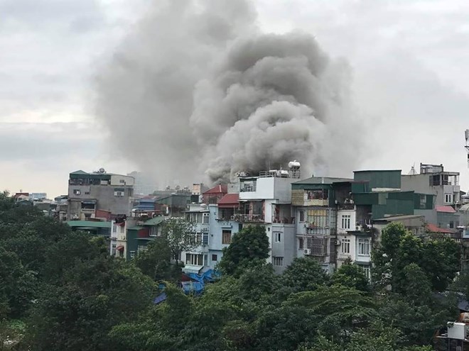 Đám cháy được xác định xuất phát từ một cơ sở karaoke đang đóng cửa rồi lan rộng (Ảnh: PV/Vietnam+)