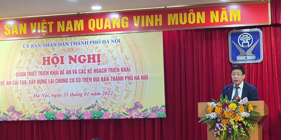 Phát biểu tại hội nghị, Phó Chủ tịch UBND TP Hà Nội Dương Đức Tuấn cho biết, vừa qua, Chính phủ đã ban hành Nghị định 69/2021/NĐ-CP ngày 15/7/2021 về cải tạo, xây dựng lại nhà chung cư cũ. Đây là cơ sở pháp lý quan trọng được củng cố, bổ sung làm căn cứ để triển khai công tác cải tạo, xây dựng lại nhà chung cư cũ trên địa bàn thành phố.