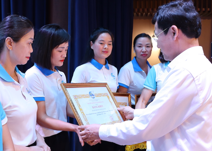 | Trao Bằng khen của Hội LHPN TP Hà Nội cho các tập thể, cá nhân đã có nhiều nỗ lực trong 3 năm triển khai chương trình “Mẹ đỡ đầu” |