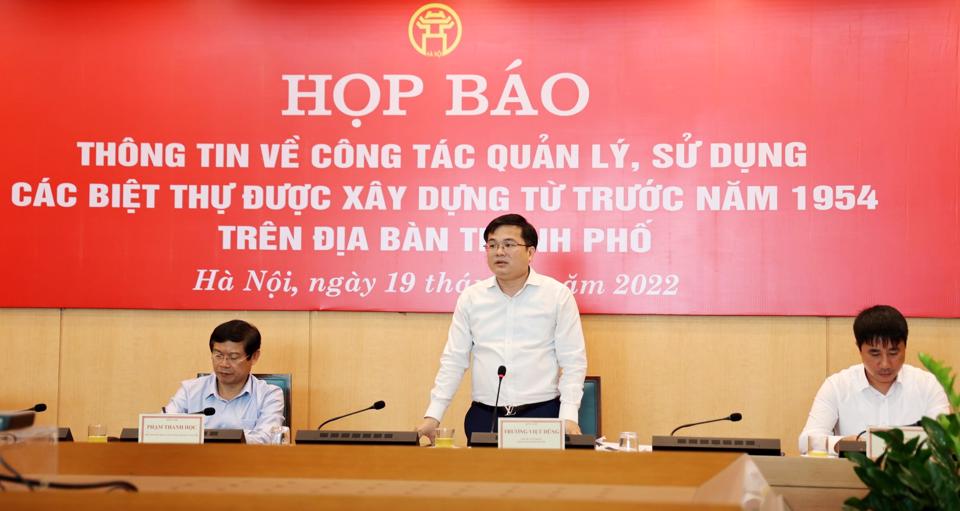 Liên quan đến việc bán 600 biệt thự cũ tại Hà Nội, chiều 19/4, UBND TP Hà Nội tổ chức họp báo thông tin về công tác quản lý, sử dụng các biệt thự được xây dựng từ trước năm 1954 trên địa bàn thành phố.