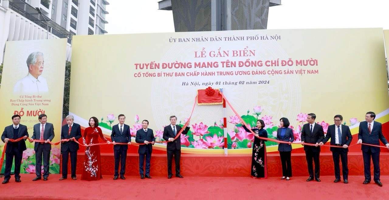 Sáng 1/2, UBND thành phố Hà Nội tổ chức Lễ gắn biển tuyến đường mang tên đồng chí Đỗ Mười, cố Tổng Bí thư Ban Chấp hành Trung ương Đảng Cộng sản Việt Nam.