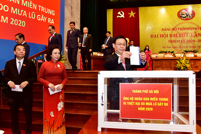 Ngay sau lời kêu gọi, các đại biểu tham dự Đại hội đại biểu Đảng bộ thành phố Hà Nội đã ủng hộ đồng bào miền Trung bị lũ lụt với sự sẻ chia và tình cảm sâu sắc nhất.