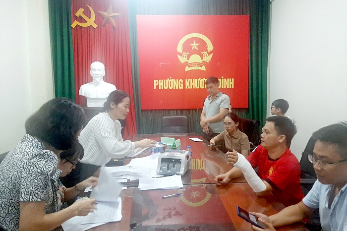 | UBND quận Thanh Xuân chi tiền hỗ trợ tạm cư cho các nạn nhân vụ hỏa hoạn (Ảnh: Vương Vân) |