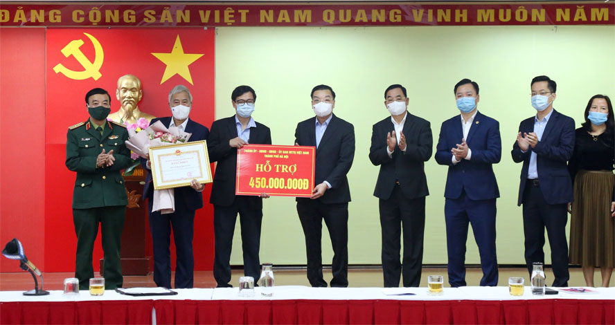 | Chủ tịch UBND TP Hà Nội Chu Ngọc Anh trao hỗ trợ của Thành ủy - HĐND - UBND - Ủy ban Mặt trận Tổ quốc Việt Nam thành phố cho cán bộ, nhân viên, y, bác sĩ CDC Hà Nội để phục vụ công tác phòng, chống dịch |