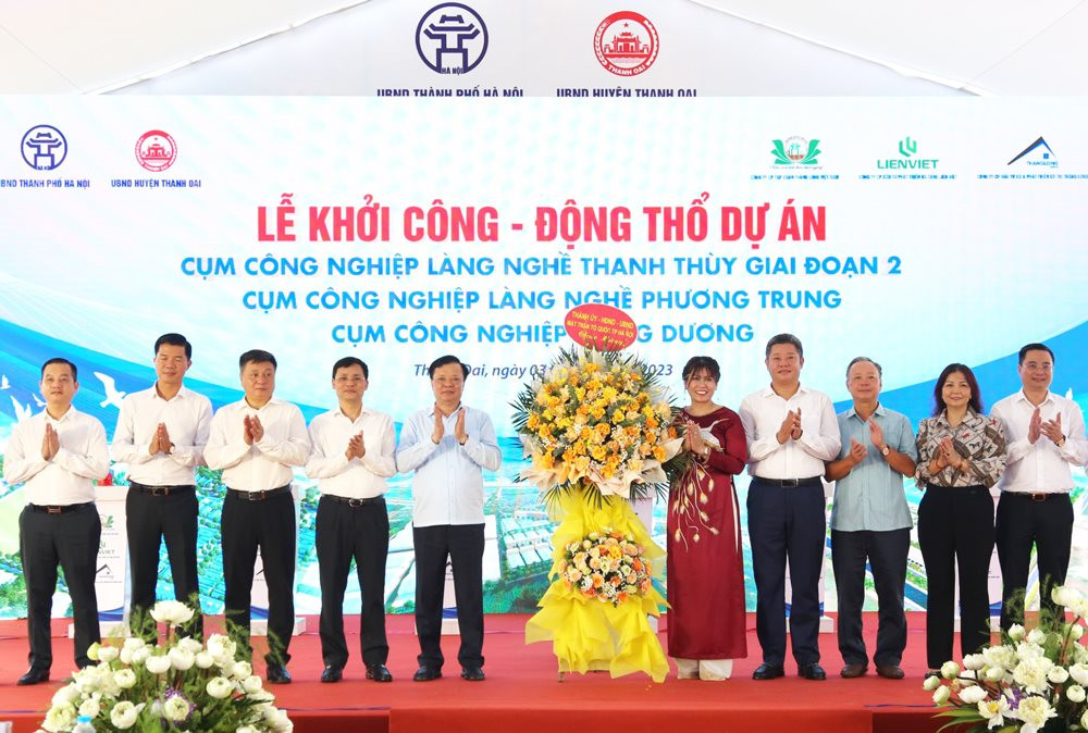 Sáng 3/8, huyện Thanh Oai, thành phố (TP) Hà Nội cùng các chủ đầu tư tổ chức lễ khởi công, động thổ ba cụm công nghiệp: Cụm công nghiệp Thanh Thùy giai đoạn 2, Cụm công nghiệp làng nghề Phương Trung và Cụm công nghiệp Hồng Dương.