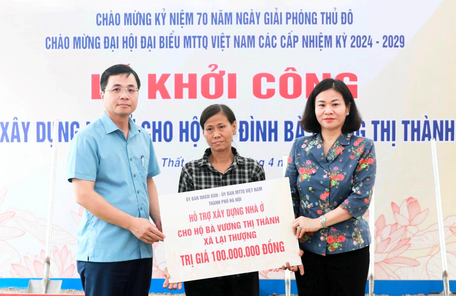 Thiết thực chào mừng kỷ niệm 70 năm Ngày Giải phóng Thủ đô (10/10/1954 - 10/10/2024), chào mừng Đại hội đại biểu Mặt trận Tổ quốc Việt Nam các cấp nhiệm kỳ 2024 - 2029, ngày 3/4, 15 huyện, thị xã trên địa bàn Hà Nội đồng loạt tổ chức chương trình hỗ trợ và khởi công xây dựng, sửa chữa nhà ở cho 725 hộ nghèo, hộ cận nghèo.