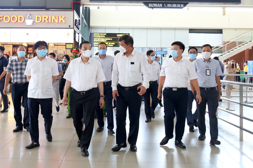 | Chủ tịch UBND thành phố Hà Nội Chu Ngọc Anh kiểm tra công tác phòng, chống dịch COVID-19 tại Sân bay quốc tế Nội Bài. |
