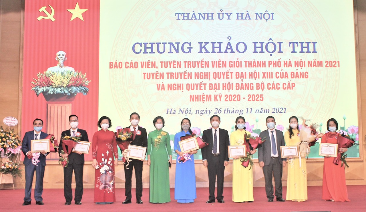 | Lãnh đạo Ban Tuyên giáo Thành ủy Hà Nội trao giải cho các thí sinh tại hội thi |