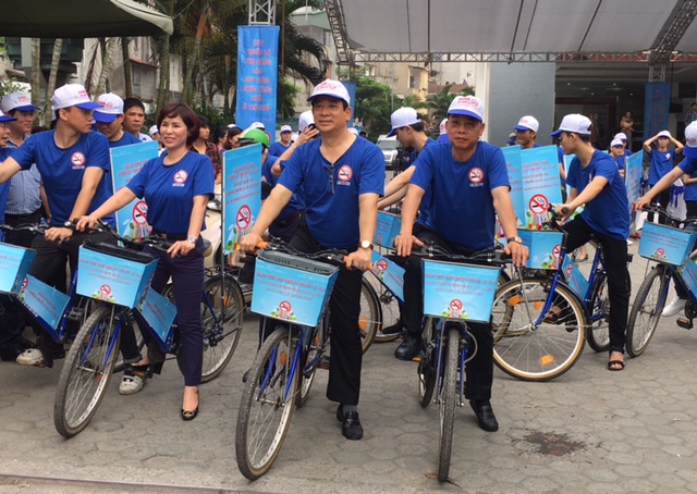 Sau buổi lễ, các đại biểu và đông đảo sinh viên Trường Cao đẳng y tế Hà Nội đã đạp xe diễu hành nhằm lan tỏa ý nghĩa của chương trình và tuyên truyền về tác hại của thuốc lá./.
