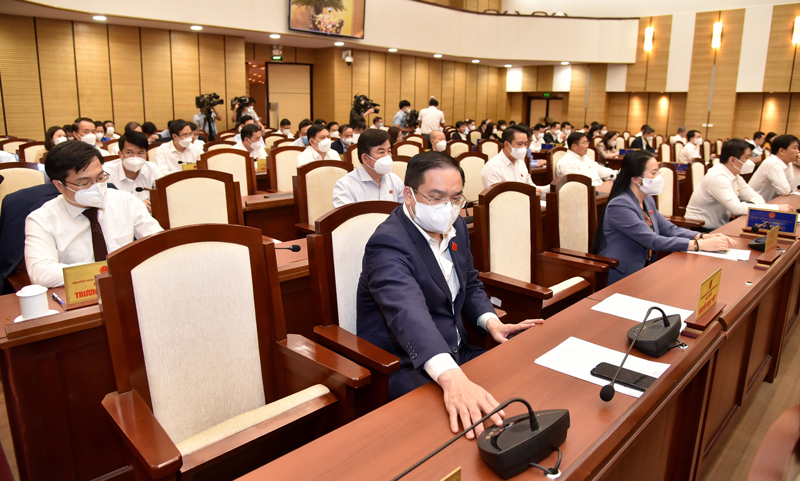 | Các đại biểu HĐND TP Hà Nội biểu quyết thông qua Nghị quyết tại kỳ họp. |