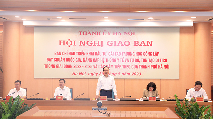 Sáng 30/5, Ban chỉ đạo triển khai đầu tư, cải tạo trường học công lập đạt chuẩn Quốc gia, nâng cấp hệ thống y tế và tu bổ, tôn tạo di tích trong giai đoạn 2022-2025 và các năm tiếp theo của thành phố Hà Nội đã tổ chức Hội nghị giao ban.
