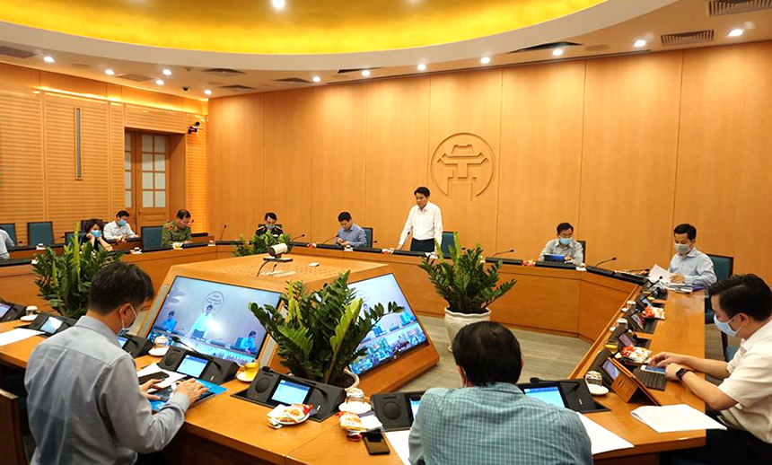 | Ban Chỉ đạo phòng, chống dịch COVID-19 của TP Hà Nội họp trực tuyến dưới sự chủ trì của Chủ tịch UBND TP Nguyễn Đức Chung. |