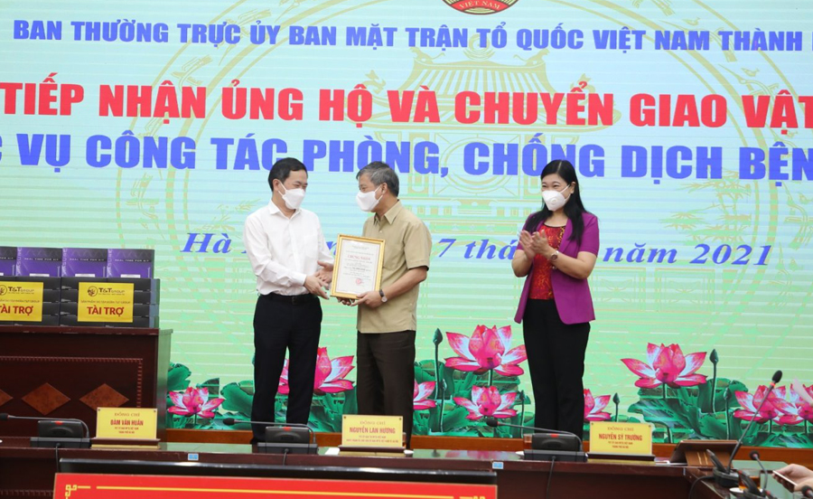 Theo đó, MTTQ Việt Nam TP Hà Nội đã tiếp nhận 1 triệu bộ kít xét nghiệm Realtime PCR trị giá 6 triệu Euro, tương đương 162 tỷ đồng, do Tập đoàn T&T trao tặng, góp phần tăng cường năng lực xét nghiệm cho ngành y tế Thủ đô, phục vụ công tác phòng, chống dịch của TP Hà Nội. Số kit xét nghiệm này được tập đoàn T&T ký hợp đồng mua từ đối tác Tây Ban Nha. Tại chương trình, 1 triệu bộ kit xét nghiệm đã được Mặt trận chuyển giao cho Sở Y tế Hà Nội.