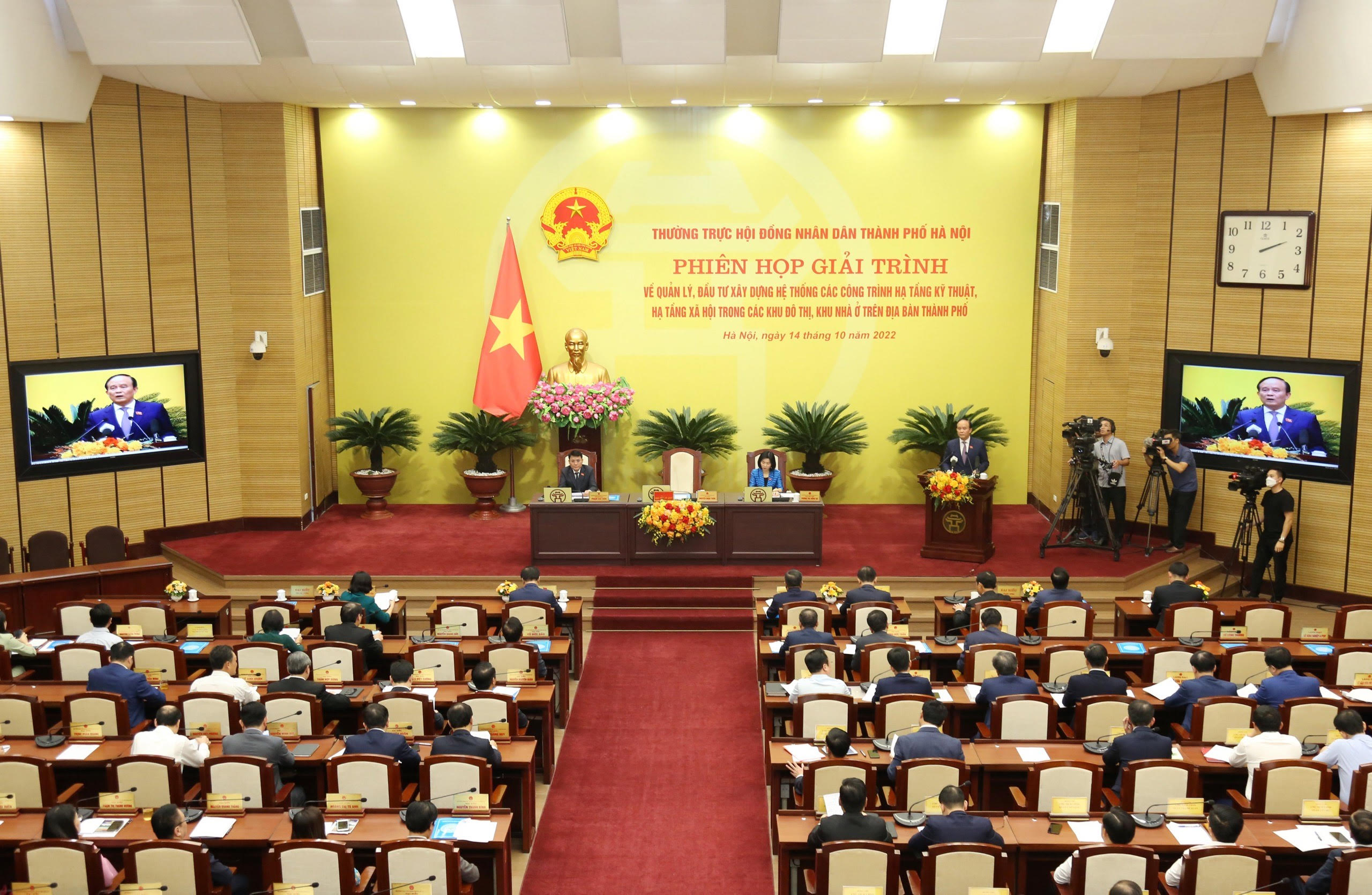 Chiều 14/10, HĐND TP Hà Nội họp phiên giải trình về quản lý, đầu tư xây dựng hệ thống các công trình hạ tầng kỹ thuật, hạ tầng xã hội trong các khu đô thị, khu nhà ở trên địa bàn Hà Nội.