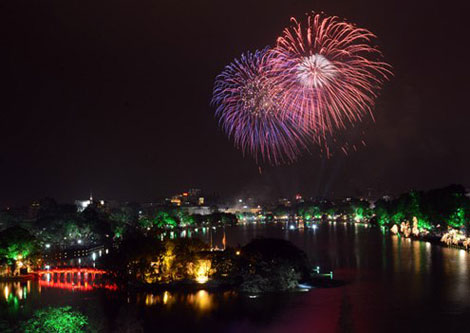 Sở Văn hóa và Thể thao Hà Nội cho biết, trong đêm giao thừa sẽ bắn pháo hoa tại 31 điểm. Thời gian bắn pháo hoa đêm giao thừa sẽ kéo dài 15 phút bắt đầu từ 0h đến 0h15 phút ngày 8/2/2016 (tức mùng 1 Tết Âm lịch). Trong 31 điểm bắn, có sáu điểm bắn pháo hoa tầm cao gồm hồ Hoàn Kiếm; Công viên Thống Nhất (quận Hai Bà Trưng); Vườn hoa Nguyễn Hoàng Tôn (quận Tây Hồ); hồ Văn Quán (quận Hà Đông); sân vận động Quốc gia Mỹ Đình (quận Nam Từ Liêm), trong đó chỉ có duy nhất điểm bắn ở hồ Hoàn Kiếm sẽ có hai trận địa pháo hoa (phía Bưu điện Bờ Hồ bắn tầm cao và phía trước trụ sở báo Hà Nội mới bắn tầm thấp).
