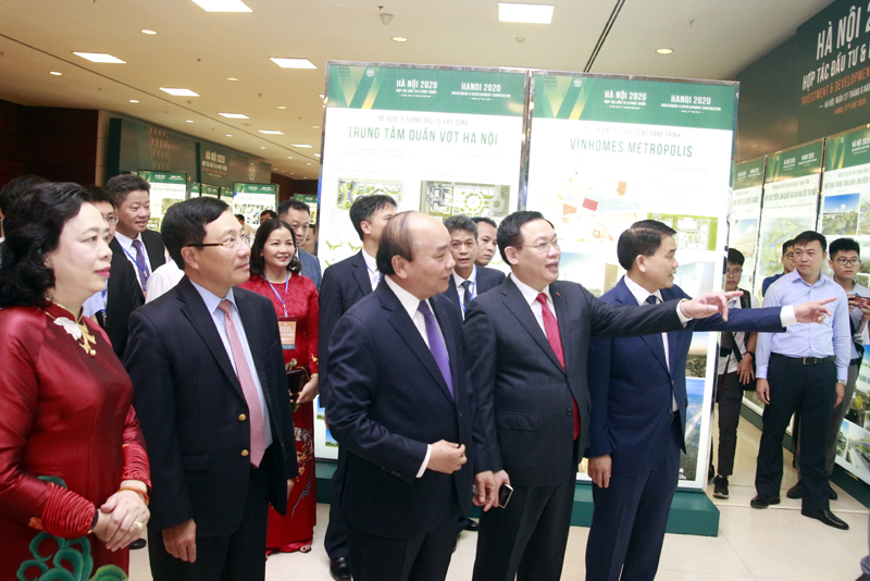 | Thủ tướng Nguyễn Xuân Phúc nghe giới thiệu một số dự án kêu gọi đầu tư Hà Nội. |