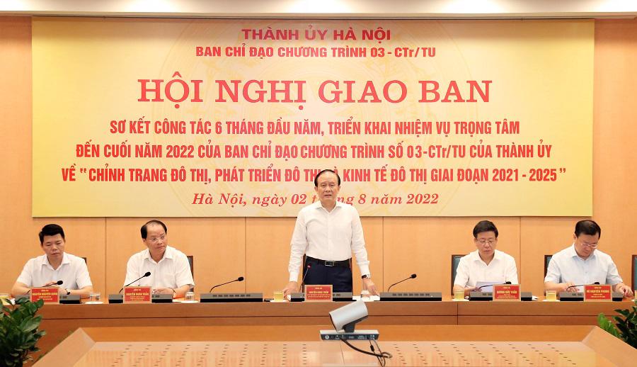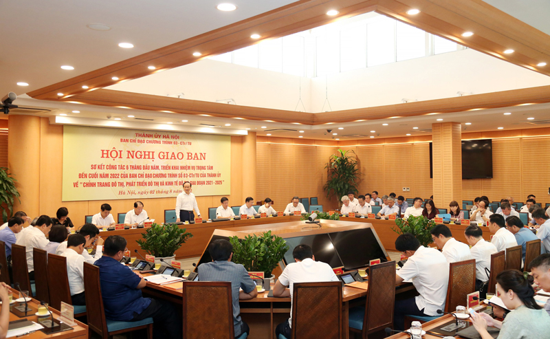 Ngày 2/8, Ban Chỉ đạo (BCĐ) Chương trình số 03-CTr/TU của Thành ủy Hà Nội về “chỉnh trang đô thị, phát triển đô thị và kinh tế đô thị giai đoạn 2021-2026” tổ chức Hội nghị sơ kết công tác 6 tháng đầu năm, triển khai nhiệm vụ trọng tâm đến cuối năm 2022 của BCĐ.