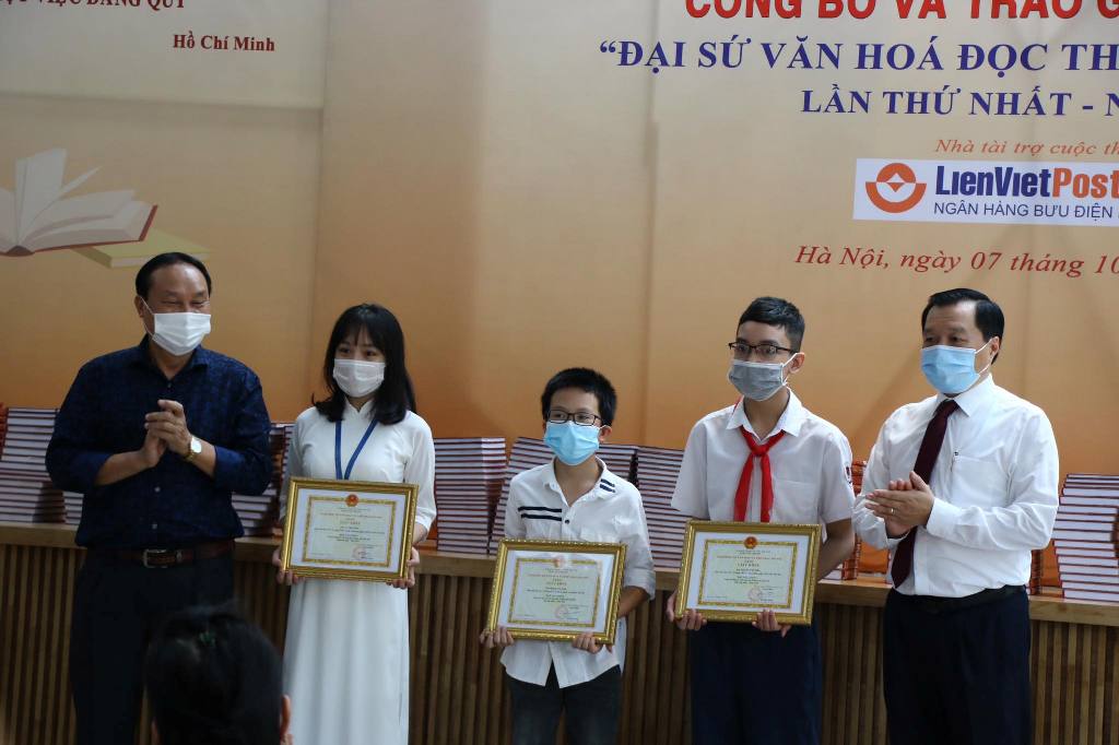 Ban Tổ chức đã lựa chọn được 10 tập thể, 20 cá nhân để trao giải và gửi bài tham dự vòng chung kết cuộc thi “Đại sứ văn hóa đọc” toàn quốc. Hai giải Nhất tập thể thuộc về Phòng Giáo dục và Đào tạo huyện Thanh Trì và quận Hai Bà Trưng. Ba giải Nhất cá nhân thuộc về học sinh: Vũ Thúy Hiền, lớp 11A5, Trường THPT Xuân Phương, quận Nam Từ Liêm; Nguyễn Thế Hiếu, lớp 7A5, Trường THCS Trung Hòa, quận Cầu Giấy; Hoàng Gia Vinh, lớp 5A1, Trường Tiểu học Ái Mộ B, quận Long Biên./.