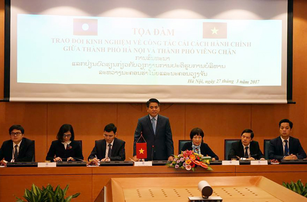 Tại buổi làm việc, đoàn đại biểu cấp cao Viêng Chăn đặc biệt quan tâm đến những khó khăn, vướng mắc trong công tác cải cách hành chính và hướng tháo gỡ. Nói về vấn đề này, Chủ tịch UBND thành phố Hà Nội Nguyễn Đức Chung khẳng định, trong quá trình cải cách hành chính, các sở, ban, ngành của thành phố phải trực tiếp đối thoại với người lao động, công chức, viên chức; đảm bảo cho những công chức, viên chức thuộc diện tinh giản ổn định tư tưởng và công việc. Bên cạnh đó, thành phố phải sắp xếp lại nội dung cải cách, những nhiệm vụ chồng chéo gom về một đầu mối, đòi hỏi phải có quy chế chặt chẽ và sự đồng lòng tham gia của mọi tổ chức, cá nhân.