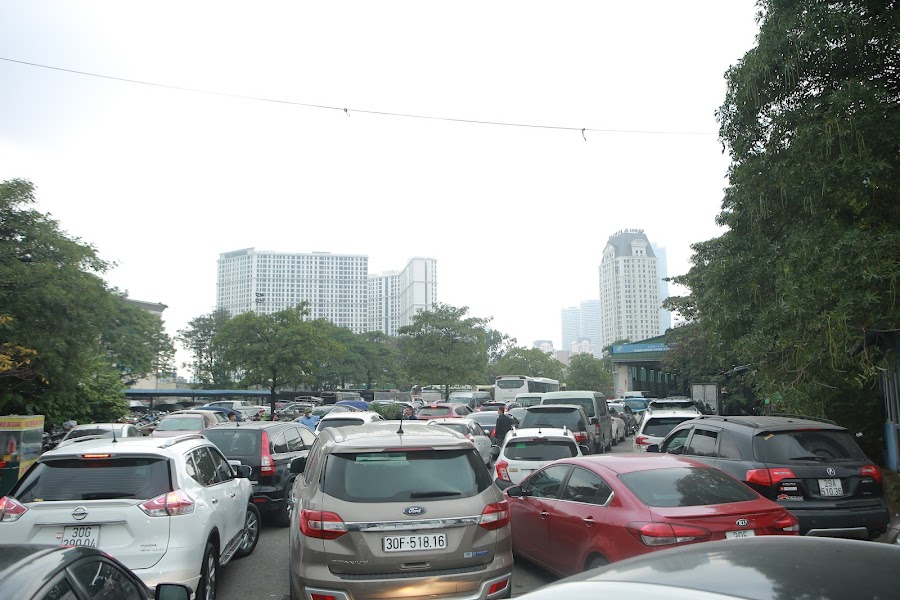 | Hiện tượng xe ùn tắc do chờ được đăng kiểm tại Hà Nội trong thời gian gần đây. |
