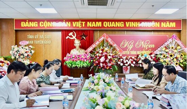 Đồng thời, Hà Tĩnh đã tiến hành thành lập Ban thẩm định, xét chọn các tác phẩm tham dự Cuộc thi cấp tỉnh; ban hành Thông báo phân công nhiệm vụ cụ thể cho các thành viên trong hội đồng thẩm định đảm bảo khoa học, minh bạch và bám sát yêu cầu của Trung ương; chỉ đạo 100% ban tuyên giáo các huyện, thành, thị ủy, Đảng ủy trực thuộc, các đơn vị liên quan để thành lập Hội đồng chấm sơ khảo ở đơn vị mình, lựa chọn các tác phẩm chất lượng gửi về Ban Tuyên giáo Tỉnh ủy để tiếp tục thẩm định, lựa chọn các tác phẩm đạt yêu cầu, chất lượng gửi Ban Tổ chức Cuộc thi cấp Trung ương.