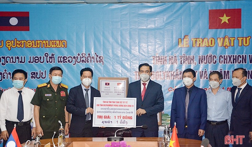 Gói vật tư y tế tỉnh Hà Tĩnh trao tặng cho tỉnh Bôlykhămxay trị giá 1 tỷ đồng, tỉnh Khăm Muộn 500 triệu đồng nhằm hỗ trợ chính quyền và Nhân dân hai tỉnh phòng, chống dịch COVID-19.