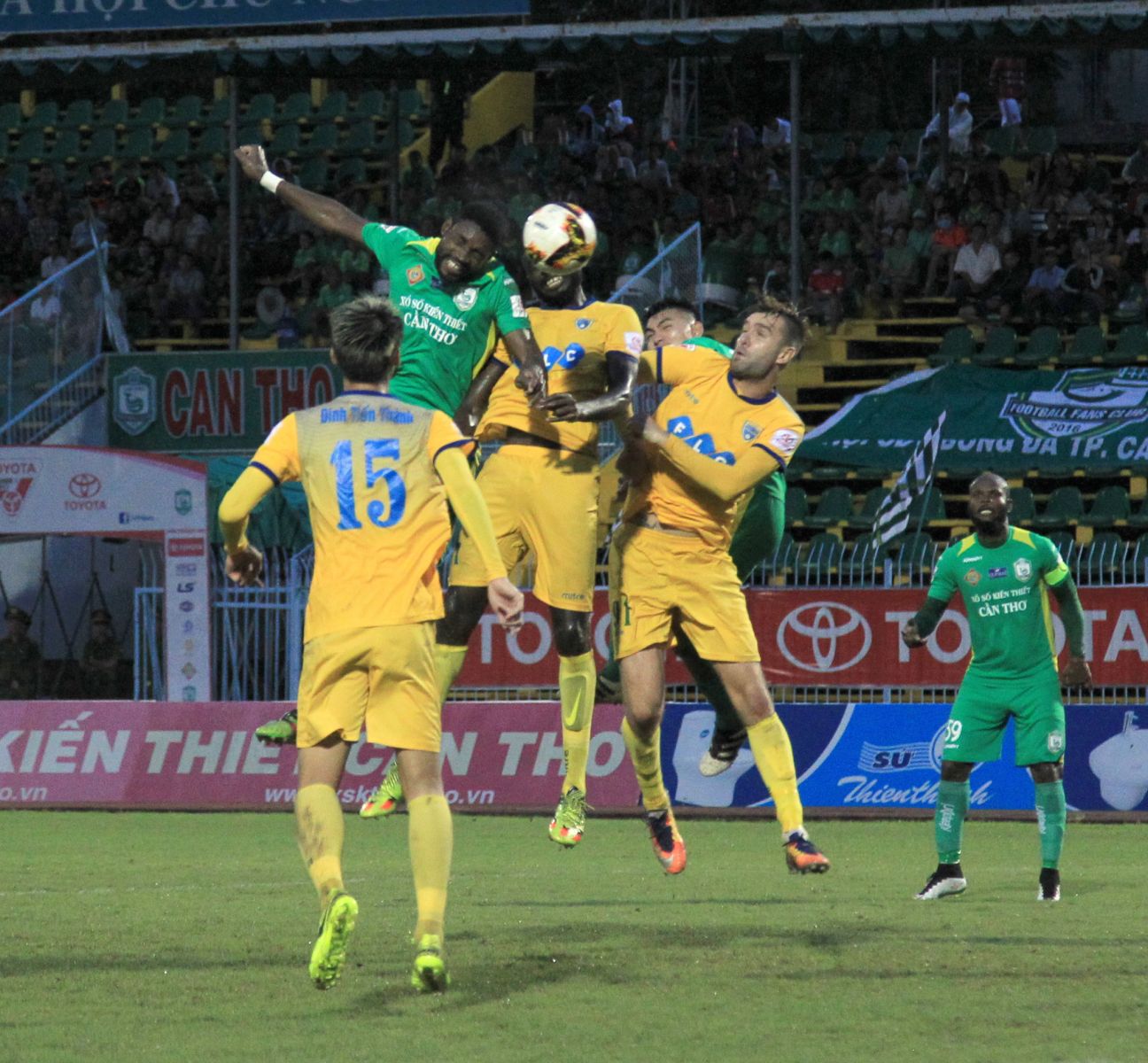 Phút 39, Văn Thắng đi bóng lắt léo loại bỏ hậu vệ Cần Thơ gần đường biên ngang, rồi chuyền vào cho Uche đánh đầu, nâng tỷ số lên 2-0 cho Thanh Hóa. Trong thế bị dẫn bàn, các cầu thủ Cần Thơ vẫn nỗ lực tràn lên tấn công và phút 45, Nsi gỡ lại được 1 bàn cho Cần Thơ sau pha đi bóng dũng mãnh.