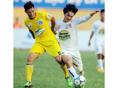 Tuấn Anh (phải) có thể ngồi dự bị hoặc thi đấu ít khi HAGL tiếp B.Bình Dương chiều tối 19-7 Ảnh: Hải Anh