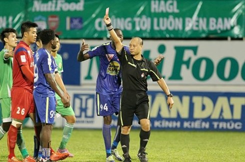 Các cầu thủ HAGL đã phải nhận thẻ đỏ trong hai vòng đấu liên tiếp. (Ảnh: Thanh niên)