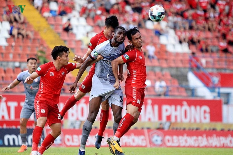 Hải Phòng (áo đỏ) bị loại ở tứ kết Cúp QG