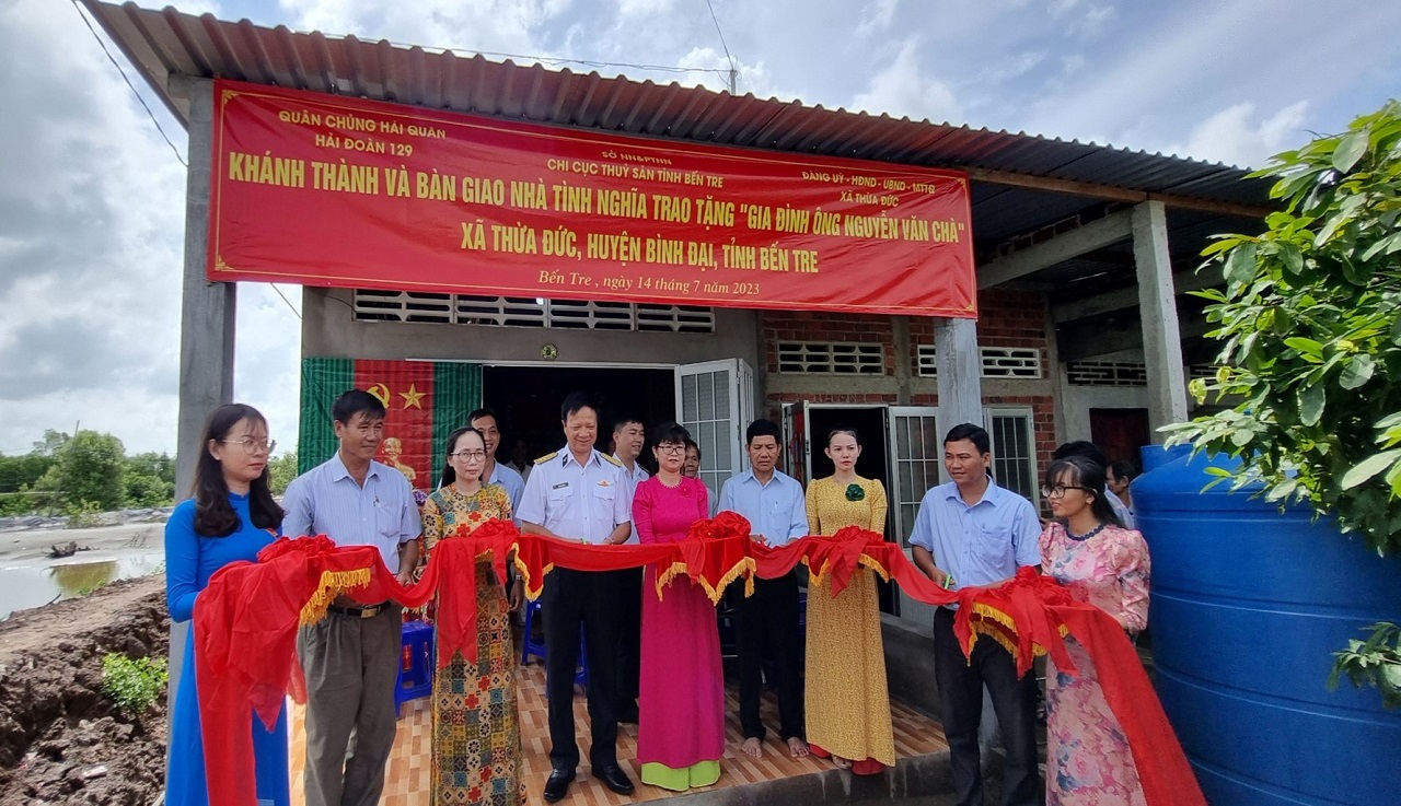 Ngày 14/7/2023, Hải đoàn 129 (Quân chủng Hải quân) phối hợp Chi cục Thủy sản tỉnh Bến Tre và chính quyền địa phương đã bàn giao nhà tình nghĩa cho gia đình cán bộ chính sách tại tỉnh Bến Tre.