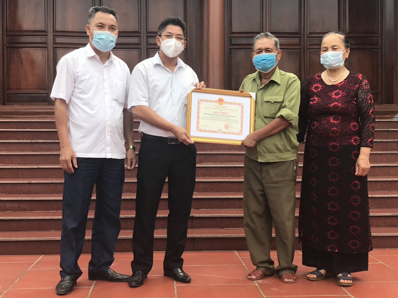 | UBND huyện Thanh Hà trao tặng Giấy khen cho gia đình ông Lê Văn Đệ (75 tuổi) và bà Nguyễn Thị Đào (73 tuổi) vì đã có thành tích đặc biệt xuất sắc trong phong trào ủng hộ Quỹ vắc xin phòng COVID-19 |