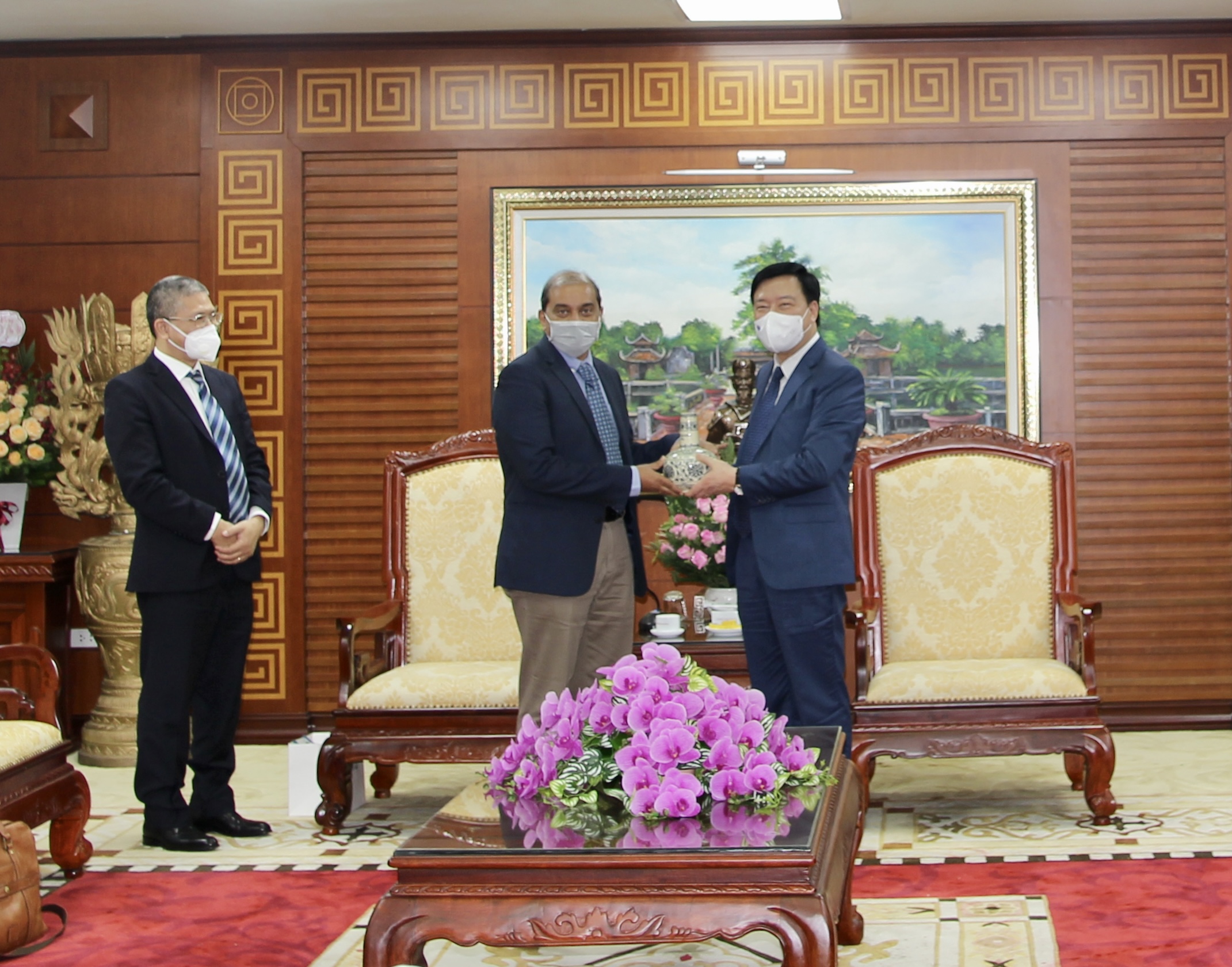 | Đồng chí Bí thư Tỉnh ủy Phạm Xuân Thăng tặng quà lưu niệm, chúc mừng ông Ruchik Shah giữ chức Tổng Giám đốc Công ty TNHH Ford Việt Nam từ ngày 1/4. |