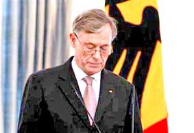 Ngày 31-5, Tổng thống Đức Horst Kohler (ảnh) đã gây bất ngờ lớn khi đột ngột tuyên bố từ chức với lý do có sự thiếu tôn trọng đối với ông và ông bị hiểu lầm về một phát biểu đưa ra mới đây. Đây là lần đầu tiên trong lịch sử nước Đức hiện đại, một nguyên thủ quốc gia từ chức và có hiệu lực ngay lập tức như vậy.