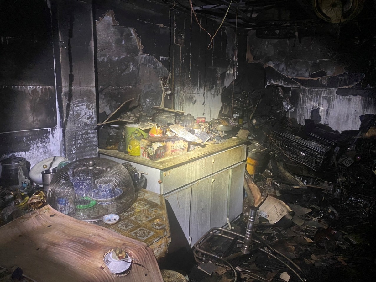 Nhiều tài sản, đồ đạc ở tầng 1 căn nhà bị thiêu rụi trong đám cháy.