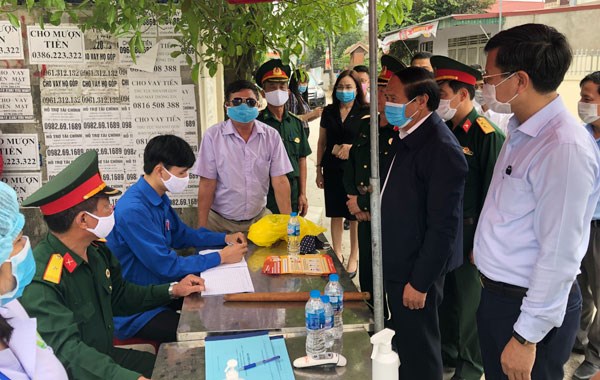 | Đồng chí Lê Văn Thành, Ủy viên Trung ương Đảng, Bí thư Thành ủy Hải Phòng kiểm tra chốt kiểm soát phòng, chống dịch COVID-19 tại huyện An Dương. |