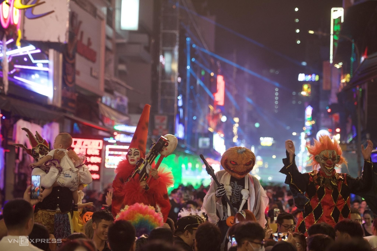 | Một góc phố Tây Bùi Viện trong đêm Halloween ngày 31/10 (Ảnh: vnexpress) |