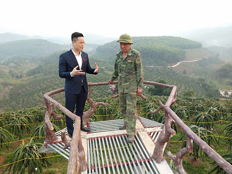 | Ông Ma Phúc Dự, Phó Chủ tịch UBND huyện Hàm Yên và lãnh đạo huyện thường xuyên trực tiếp trao đổi với ông Đỗ Văn Hân và nhiều chủ vườn khác để cùng nhau thảo luận thống nhất hướng đầu tư phát triển mô hình kinh tế vườn rừng gắn với du lịch trải nghiệm cho giá trị kinh tế cao (ảnh: TQ) |