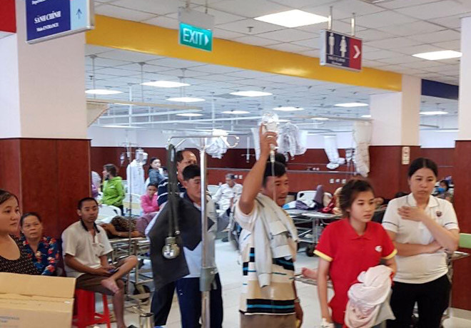 Công nhân Công ty TNHH Ấn Độ Dương nhập viện tại Khoa Cấp cứu Bệnh viện đa khoa trung tâm An Giang vào chiều 14/12. Ảnh: Linh Giang