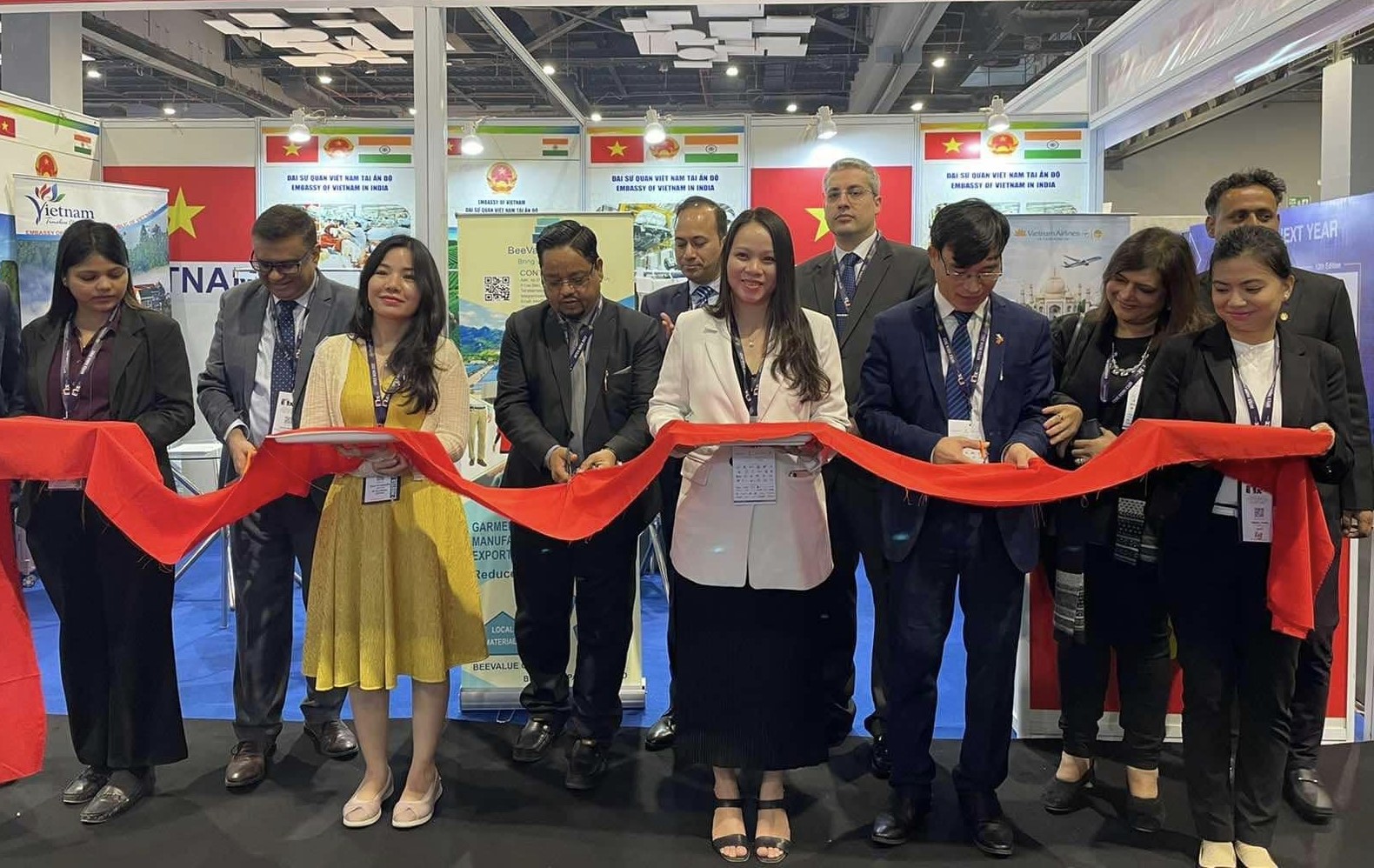 Tiếp tục các hoạt động xúc tiến thương mại nhân dịp kỷ niệm 50 năm quan hệ ngoại giao Việt Nam - Ấn Độ, ngày 8/12, Thương vụ - Đại sứ quán Việt Nam tại Ấn Độ đã tổ chức khai trương khu gian hàng Việt Nam tại Hội chợ dệt may Nam Á (Intex South Asia) tại trung tâm triển lãm Pragati Maidan, thủ đô New Delhi, Ấn Độ.
