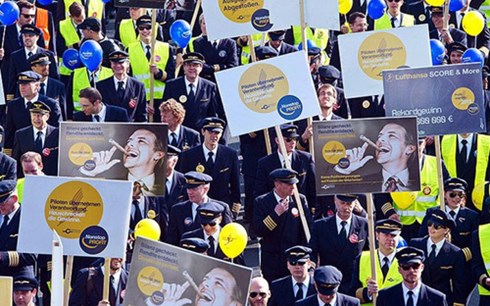 Phi công Lufthansa đình công bên ngoài sân bay Frankfurt vào tháng 4/2014. (Ảnh: EPA)