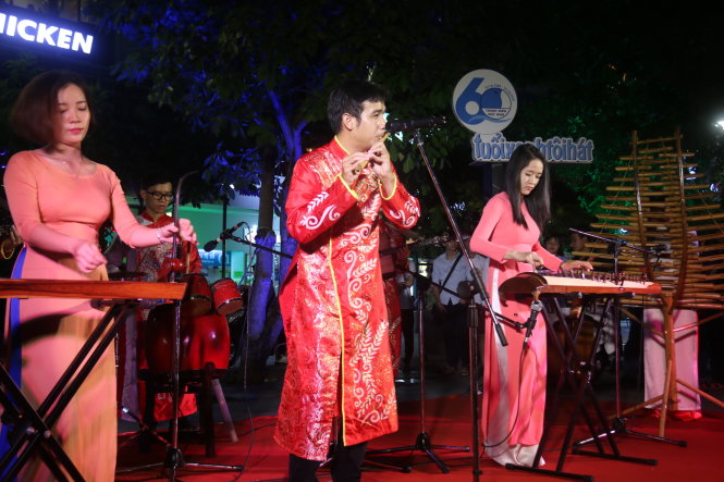 Biểu diễn âm nhạc dân tộc tại phố đi bộ Nguyễn Huệ