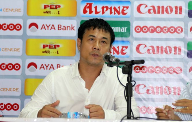 HLV Nguyễn Hữu Thắng trong buổi họp báo sau trận đấu. Ảnh: N.K