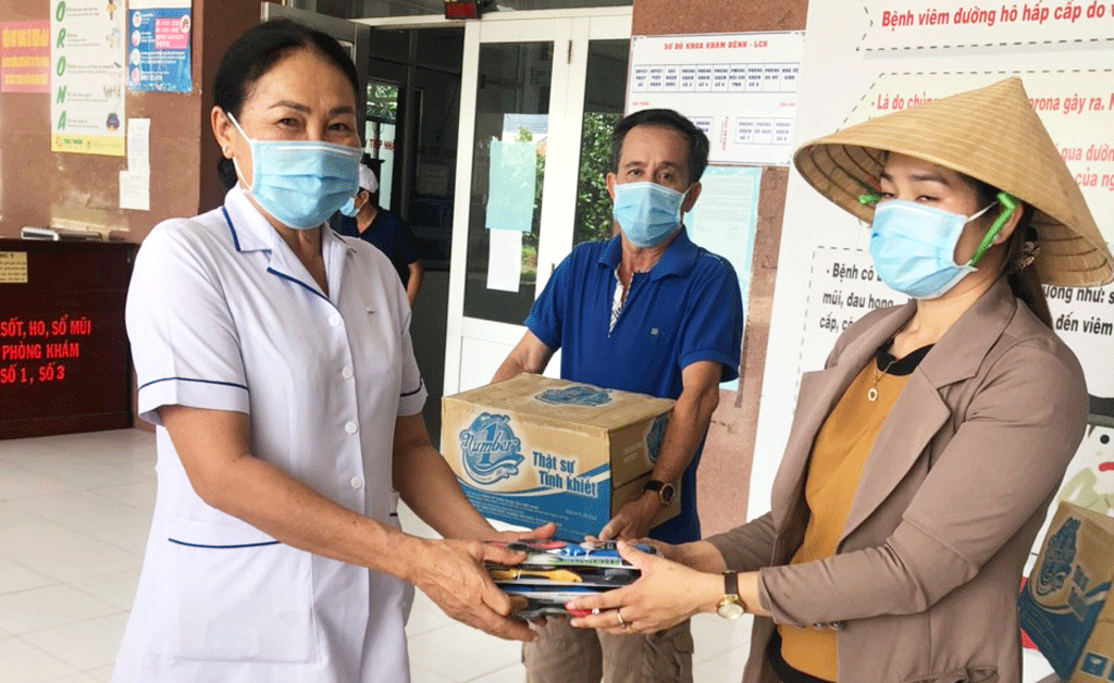 Nhóm Thiện nguyện Cần Đước hỗ trợ các dụng cụ cần thiết cho người đang ở trong khu vực bị phong tỏa tại Bệnh viện Đa khoa Cần Đước