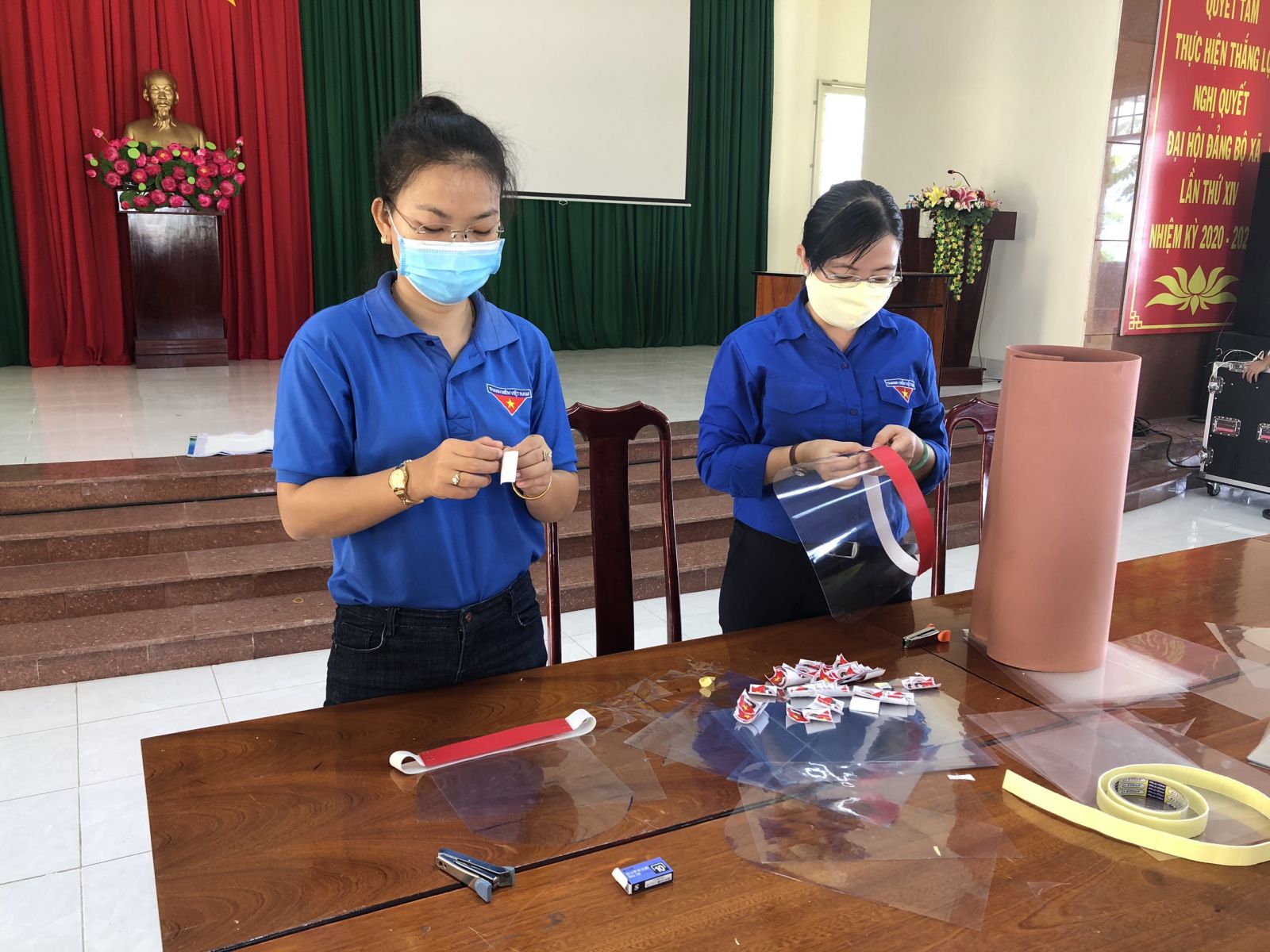 Huyện đoàn Cần Giuộc làm mặt nạ ngăn giọt bắn hỗ trợ công tác phòng, chống dịch Covid-19